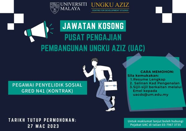 Iklan Jawatan Pusat Pengajian Pembangunan Ungku Aziz, Universiti Malaya Like serta Ikut Facebook Kami, follow Chanel WhatsApp Jawatan Kosong & Telegram Portal SPA9 untuk capaian pantas kekosongan jawatan daripada kami sekarang.