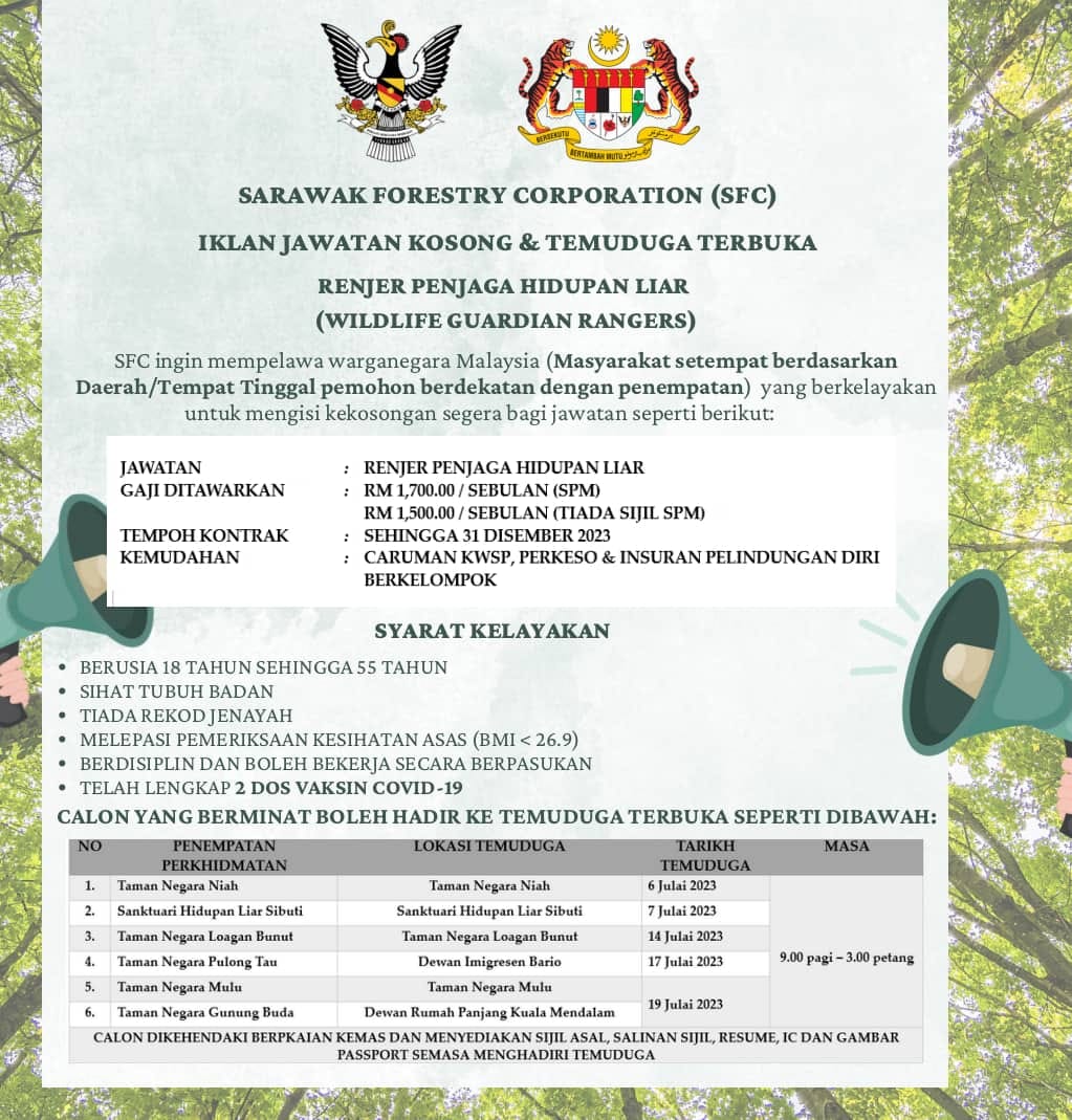 Iklan Jawatan Sarawak Forestry Corporation (SFC) Like serta Ikut Facebook Kami, follow Chanel WhatsApp Jawatan Kosong & Telegram Portal SPA9 untuk capaian pantas kekosongan jawatan daripada kami sekarang.