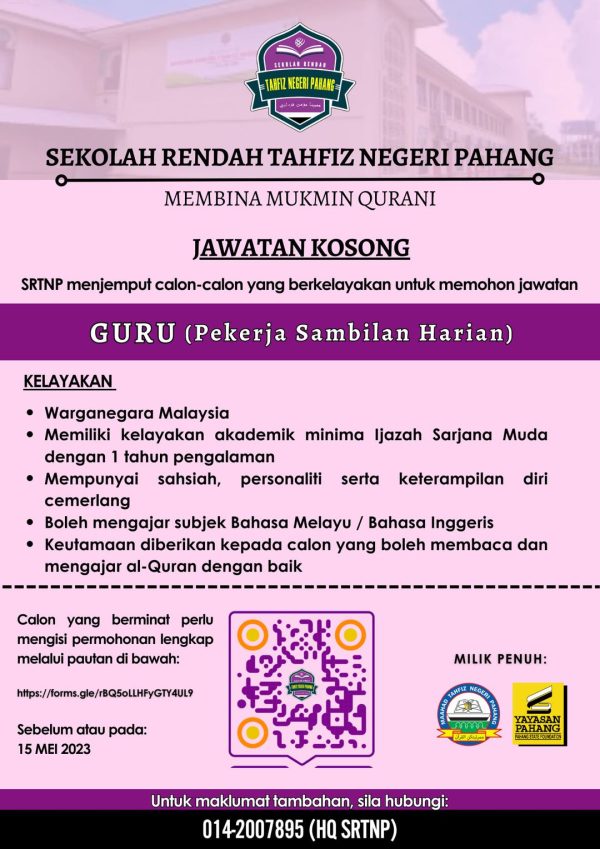Iklan Jawatan Sekolah Rendah Tahfiz Negeri Pahang Like serta Ikut Facebook Kami, follow Chanel WhatsApp Jawatan Kosong & Telegram Portal SPA9 untuk capaian pantas kekosongan jawatan daripada kami sekarang. Klik Jawatan Disini