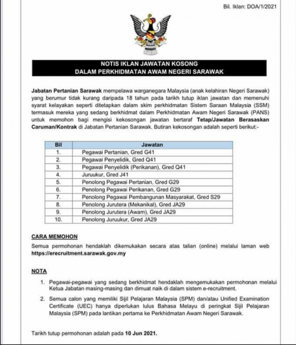 Iklan Jawatan Suruhanjaya Perkhidmatan Awam Negeri Sarawak (SPANS) Like serta Ikut Facebook Kami, follow Chanel WhatsApp Jawatan Kosong & Telegram Portal SPA9 untuk capaian pantas kekosongan jawatan daripada kami sekarang.