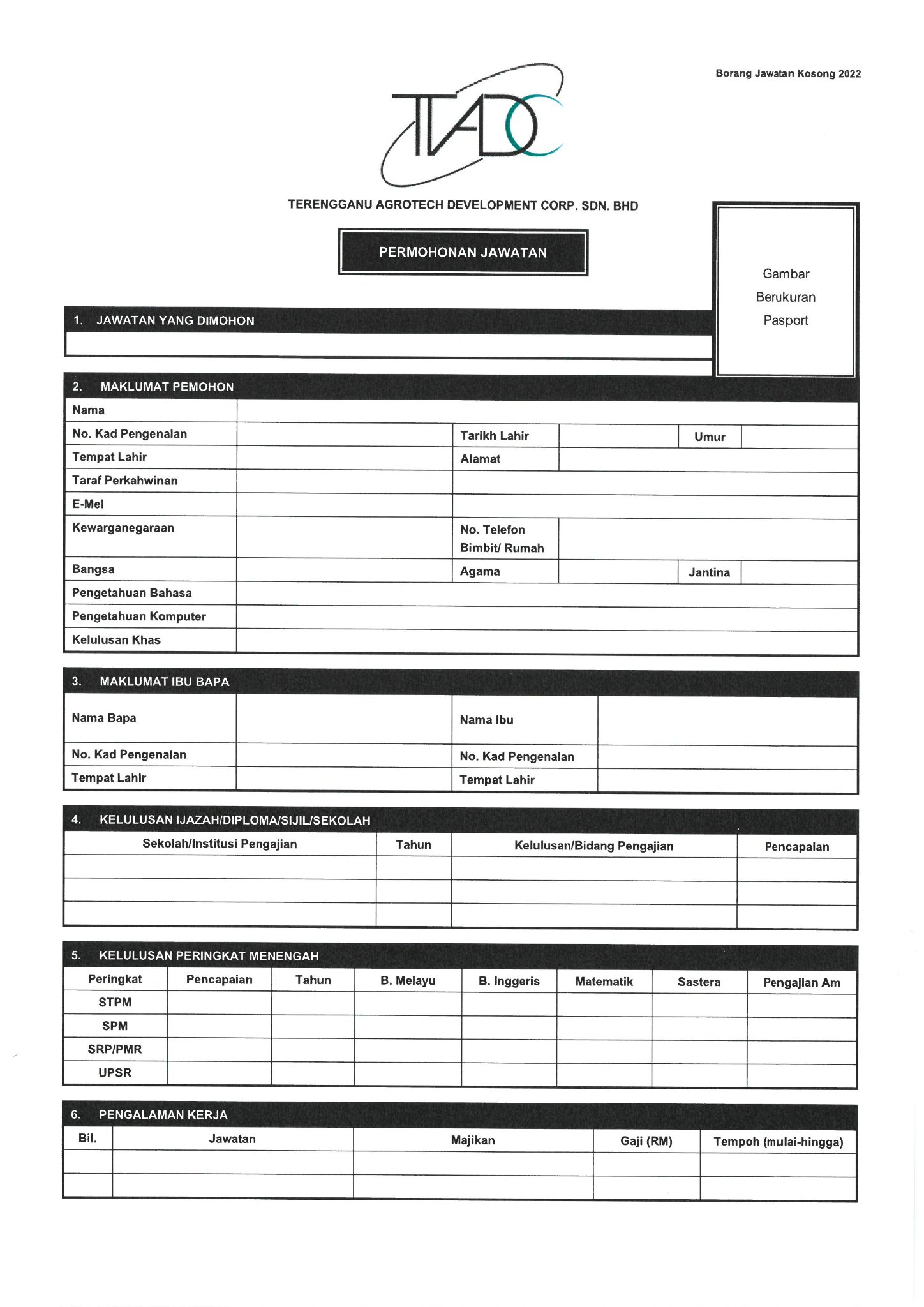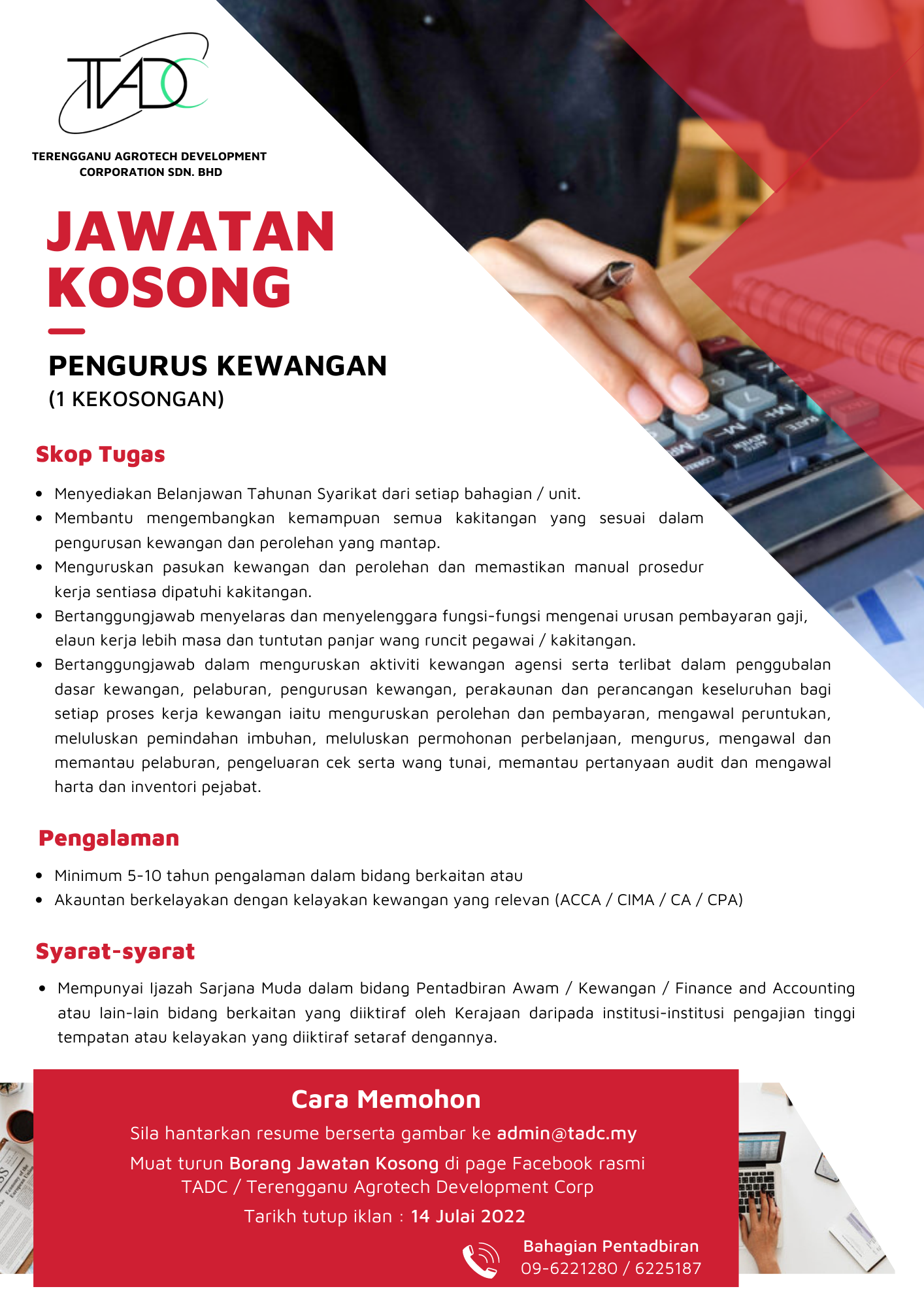 Iklan Jawatan Terengganu Agrotech Development Corporation Sdn Bhd (TADC) Like serta Ikut Facebook Kami, follow Chanel WhatsApp Jawatan Kosong & Telegram Portal SPA9 untuk capaian pantas kekosongan jawatan daripada kami sekarang.