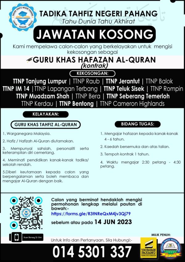 Iklan Jawatan Tadika Tahfiz Negeri Pahang