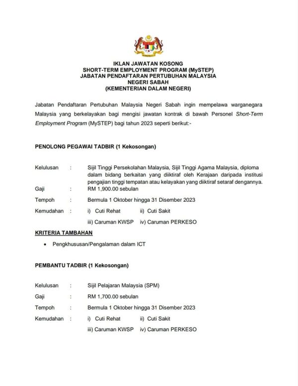 Iklan Jawatan Terkini Jabatan Pendaftaran Pertubuhan Malaysia Like serta Ikut Facebook Kami, follow Chanel WhatsApp Jawatan Kosong & Telegram Portal SPA9 untuk capaian pantas kekosongan jawatan daripada kami sekarang.