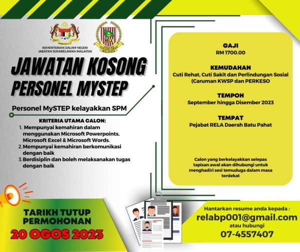 Iklan Jawatan Terkini Jabatan Sukarelawan Malaysia (RELA) Like serta Ikut Facebook Kami, follow Chanel WhatsApp Jawatan Kosong & Telegram Portal SPA9 untuk capaian pantas kekosongan jawatan daripada kami sekarang.