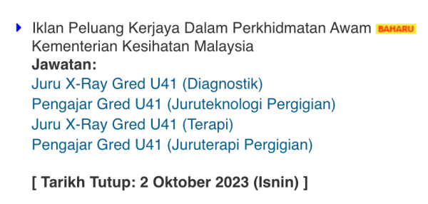 Iklan Jawatan Terkini Kementerian Kesihatan Malaysia (KKM) Like serta Ikut Facebook Kami, follow Chanel WhatsApp Jawatan Kosong & Telegram Portal SPA9 untuk capaian pantas kekosongan jawatan daripada kami sekarang. Klik Jawatan Disini