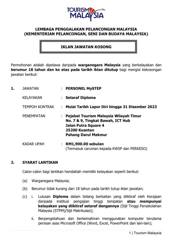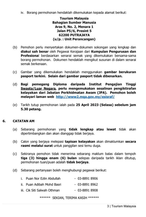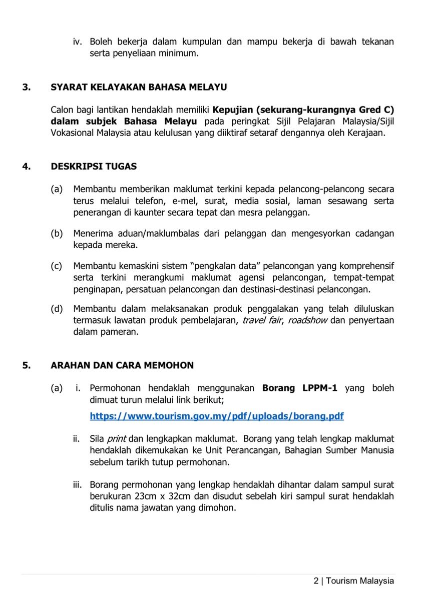 Iklan Jawatan Tourism Malaysia Like serta Ikut Facebook Kami, follow Chanel WhatsApp Jawatan Kosong & Telegram Portal SPA9 untuk capaian pantas kekosongan jawatan daripada kami sekarang.