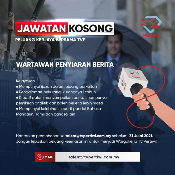 Iklan Jawatan TV Pertiwi Like serta Ikut Facebook Kami, follow Chanel WhatsApp Jawatan Kosong & Telegram Portal SPA9 untuk capaian pantas kekosongan jawatan daripada kami sekarang.