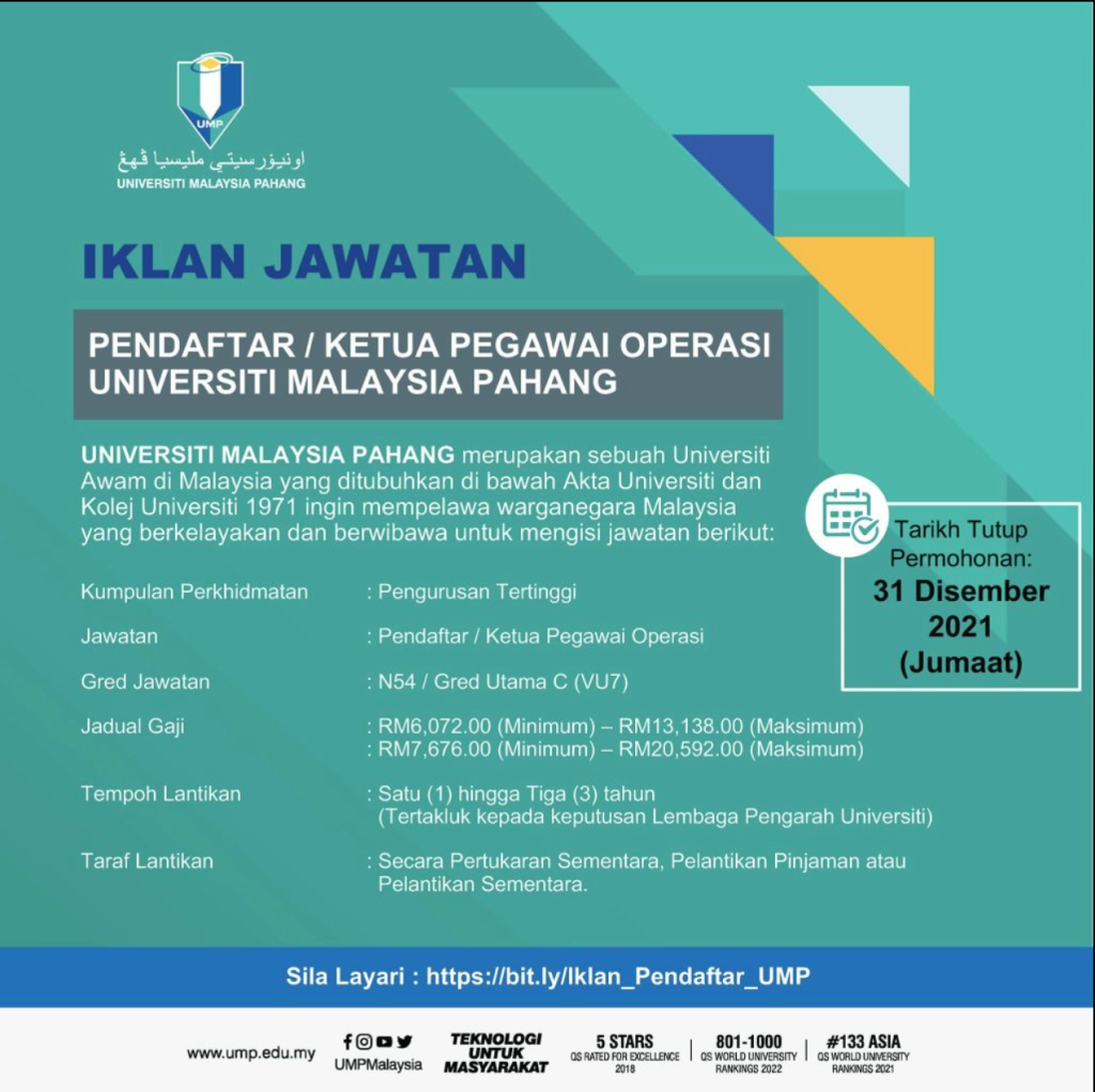 Iklan Jawatan Universiti Malaysia Pahang Like serta Ikut Facebook Kami, follow Chanel WhatsApp Jawatan Kosong & Telegram Portal SPA9 untuk capaian pantas kekosongan jawatan daripada kami sekarang. KLIK UNTUK MOHON
