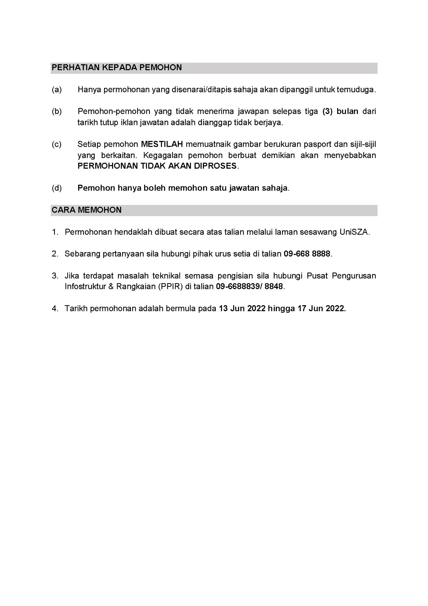 Iklan Jawatan Universiti Sultan Zainal Abidin (UNISZA) Like serta Ikut Facebook Kami, follow Chanel WhatsApp Jawatan Kosong & Telegram Portal SPA9 untuk capaian pantas kekosongan jawatan daripada kami sekarang. IKLAN PENUH JAWATAN