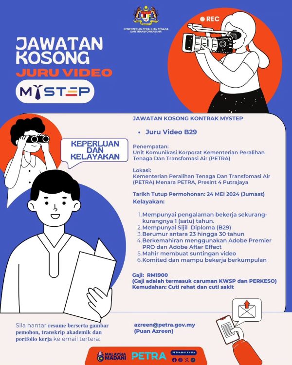 Iklan Jawatan Unit Komunikasi Korporat, Kementerian Peralihan Tenaga dan Transformasi Air (PETRA)