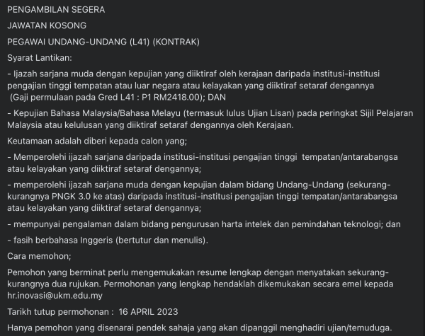 Iklan Jawatan Universiti Kebangsaan Malaysia (UKM)