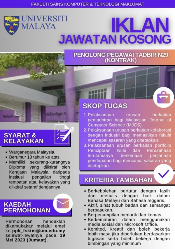 Iklan Jawatan Universiti Malaya Like serta Ikut Facebook Kami, follow Chanel WhatsApp Jawatan Kosong & Telegram Portal SPA9 untuk capaian pantas kekosongan jawatan daripada kami sekarang.