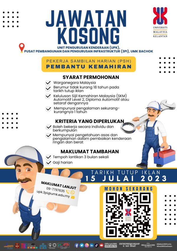Iklan Jawatan Universiti Malaysia Kelantan (UMK) Like serta Ikut Facebook Kami, follow Chanel WhatsApp Jawatan Kosong & Telegram Portal SPA9 untuk capaian pantas kekosongan jawatan daripada kami sekarang.