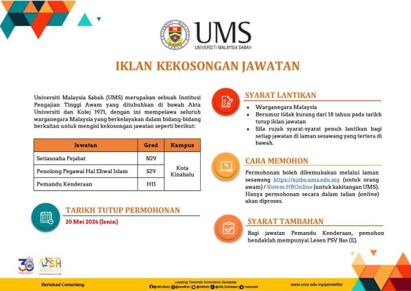 Iklan Jawatan Universiti Malaysia Sabah Like serta Ikut Facebook Kami, follow Chanel WhatsApp Jawatan Kosong & Telegram Portal SPA9 untuk capaian pantas kekosongan jawatan daripada kami sekarang.