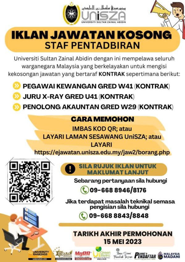 Iklan Jawatan Universiti Sultan Zainal Abidin (UNISZA) Klik Jawatan Disini Like serta Ikut Facebook Kami, follow Chanel WhatsApp Jawatan Kosong & Telegram Portal SPA9 untuk capaian pantas kekosongan jawatan daripada kami sekarang.