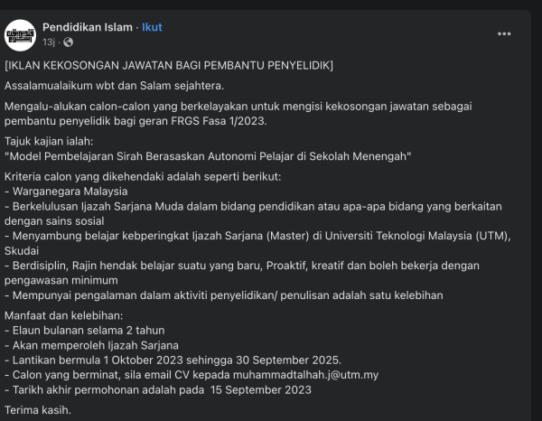Iklan Jawatan Universiti Teknologi Malaysia (UTM) Like serta Ikut Facebook Kami, follow Chanel WhatsApp Jawatan Kosong & Telegram Portal SPA9 untuk capaian pantas kekosongan jawatan daripada kami sekarang.