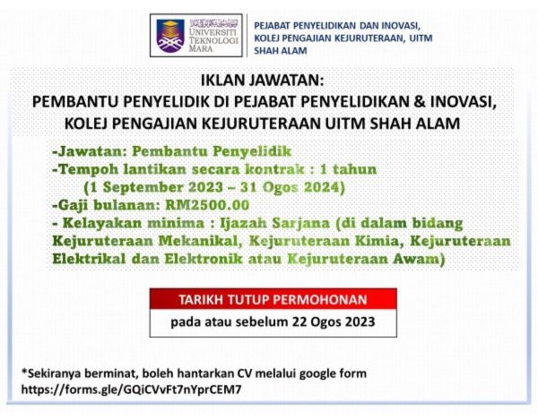 Iklan Jawatan Universiti Teknologi MARA (UiTM) Shah Alam Like serta Ikut Facebook Kami, follow Chanel WhatsApp Jawatan Kosong & Telegram Portal SPA9 untuk capaian pantas kekosongan jawatan daripada kami sekarang. Klik Jawatan Disini