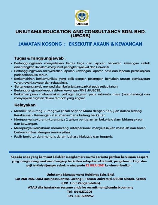 Iklan Jawatan Universiti Utara Malaysia Like serta Ikut Facebook Kami, follow Chanel WhatsApp Jawatan Kosong & Telegram Portal SPA9 untuk capaian pantas kekosongan jawatan daripada kami sekarang.