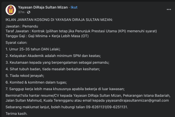 Iklan Jawatan Yayasan Diraja Sultan Mizan Like serta Ikut Facebook Kami, follow Chanel WhatsApp Jawatan Kosong & Telegram Portal SPA9 untuk capaian pantas kekosongan jawatan daripada kami sekarang.