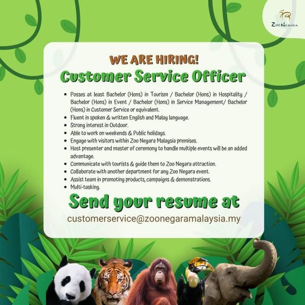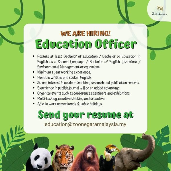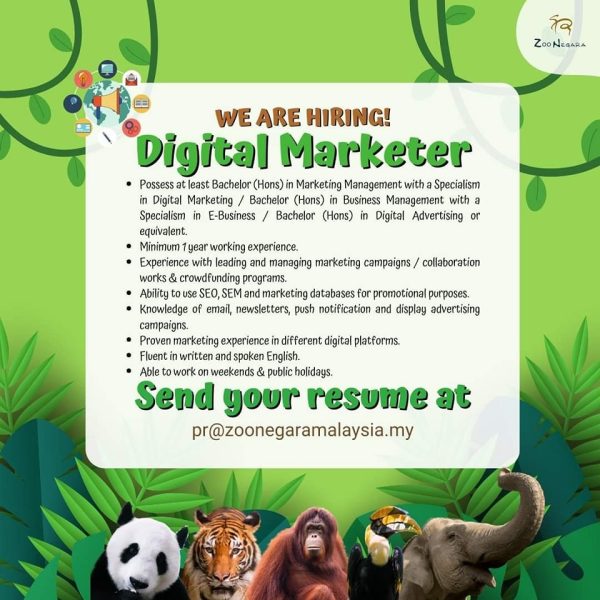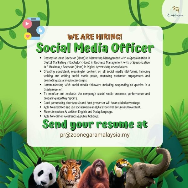 Iklan Jawatan Zoo Negara Malaysia Like serta Ikut Facebook Kami, follow Chanel WhatsApp Jawatan Kosong & Telegram Portal SPA9 untuk capaian pantas kekosongan jawatan daripada kami sekarang.