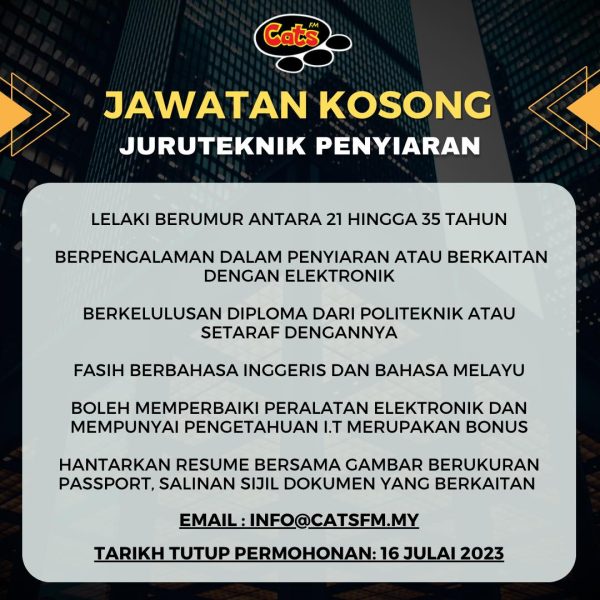 Iklan Jawatann CATS FM Like serta Ikut Facebook Kami, follow Chanel WhatsApp Jawatan Kosong & Telegram Portal SPA9 untuk capaian pantas kekosongan jawatan daripada kami sekarang.