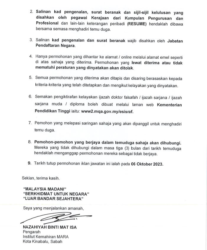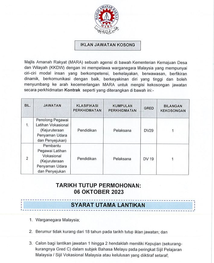 Iklan Jawtaan Jawatan Kosong Majlis Amanah Rakyat (MARA) Like serta Ikut Facebook Kami, follow Chanel WhatsApp Jawatan Kosong & Telegram Portal SPA9 untuk capaian pantas kekosongan jawatan daripada kami sekarang.