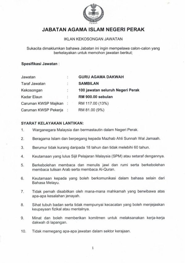 Iklan Kekosongan Jawatan Jabatan Agama Islam Perak Like serta Ikut Facebook Kami, follow Chanel WhatsApp Jawatan Kosong & Telegram Portal SPA9 untuk capaian pantas kekosongan jawatan daripada kami sekarang.