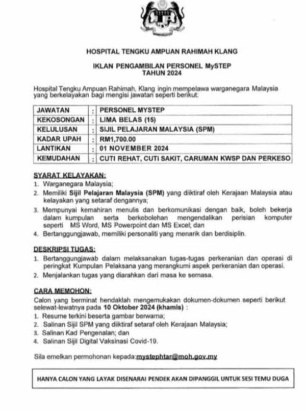 Iklan kini Hospital Tengku Ampuan Rahimah Like serta Ikut Facebook Kami, follow Chanel WhatsApp Jawatan Kosong & Telegram Portal SPA9 untuk capaian pantas kekosongan jawatan daripada kami sekarang.