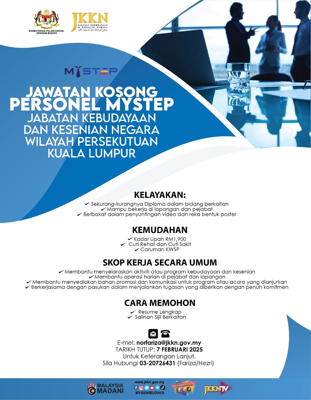 Iklan Kini Jabatan Kebudayaan Dan Kesenian Negara Like serta Ikut Facebook Kami, follow Chanel WhatsApp Jawatan Kosong & Telegram Portal SPA9 untuk capaian pantas kekosongan jawatan daripada kami sekarang. Klik Iklan Disini
