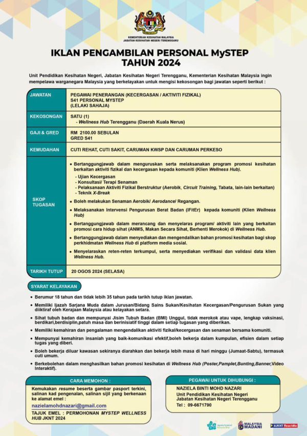 Iklan Kini Jabatan Kesihatan Negeri Terengganu Like serta Ikut Facebook Kami, follow Chanel WhatsApp Jawatan Kosong & Telegram Portal SPA9 untuk capaian pantas kekosongan jawatan daripada kami sekarang.