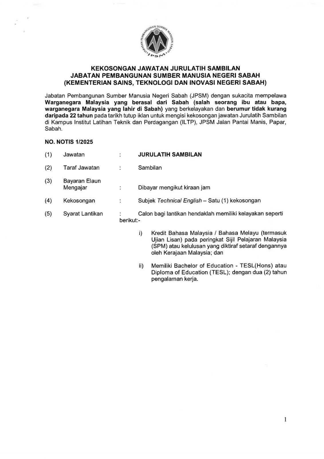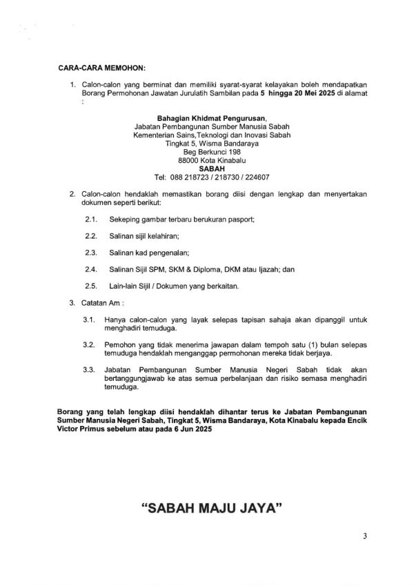 Iklan Kini Jabatan Pembangunan Sumber Manusia Negeri Sabah Klik Jawatan Disini Like serta Ikut Facebook Kami, follow Chanel WhatsApp Jawatan Kosong & Telegram Portal SPA9 untuk capaian pantas kekosongan jawatan daripada kami sekarang.
