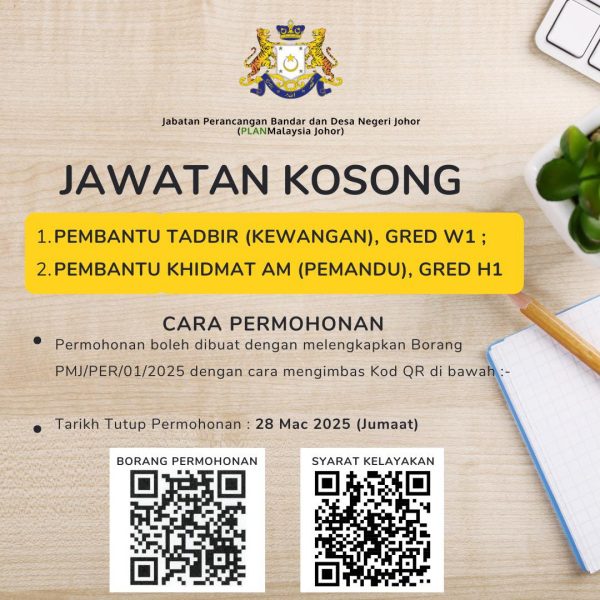 Iklan Kini Jabatan Perancangan Bandar dan Desa Negeri Johor (PLANMalaysia Johor) Klik Jawatan Disini Like serta Ikut Facebook Kami, follow Chanel WhatsApp Jawatan Kosong & Telegram Portal SPA9 untuk capaian pantas kekosongan jawatan daripada kami sekarang.