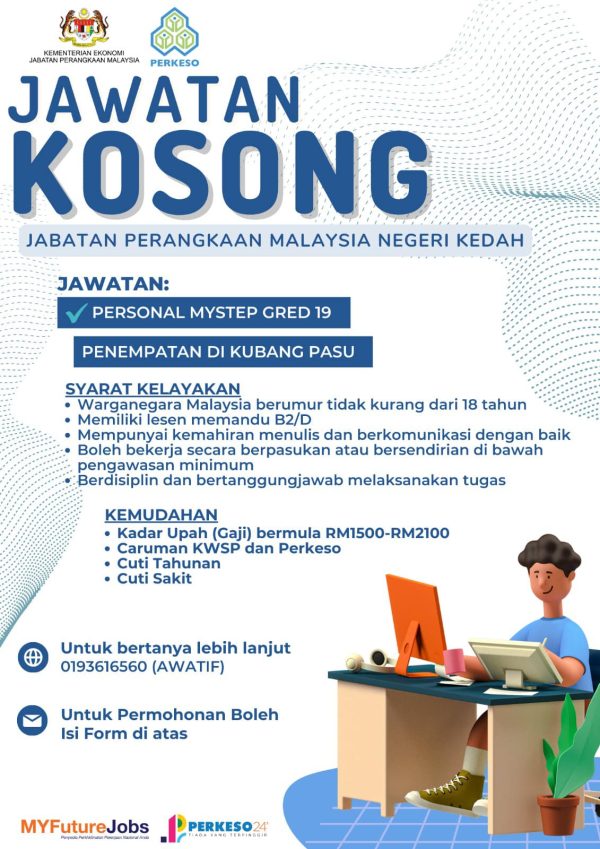 Iklan Kini Jabatan Perangkaan Malaysia Negeri Kedah Like serta Ikut Facebook Kami, follow Chanel WhatsApp Jawatan Kosong & Telegram Portal SPA9 untuk capaian pantas kekosongan jawatan daripada kami sekarang. Klik Jawatan Disini