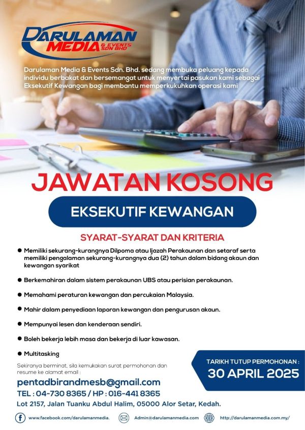 Iklan Kini Jawatan Darulaman Media & Events Klik Jawatan Disini Like serta Ikut Facebook Kami, follow Chanel WhatsApp Jawatan Kosong & Telegram Portal SPA9 untuk capaian pantas kekosongan jawatan daripada kami sekarang.