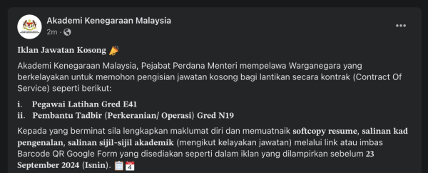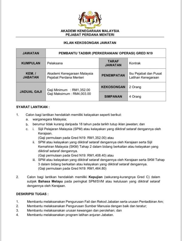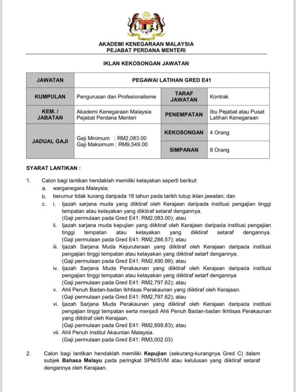 Iklan Kini Jawatan Di Akademi Kenegaraan Malaysia Like serta Ikut Facebook Kami, follow Chanel WhatsApp Jawatan Kosong & Telegram Portal SPA9 untuk capaian pantas kekosongan jawatan daripada kami sekarang.
