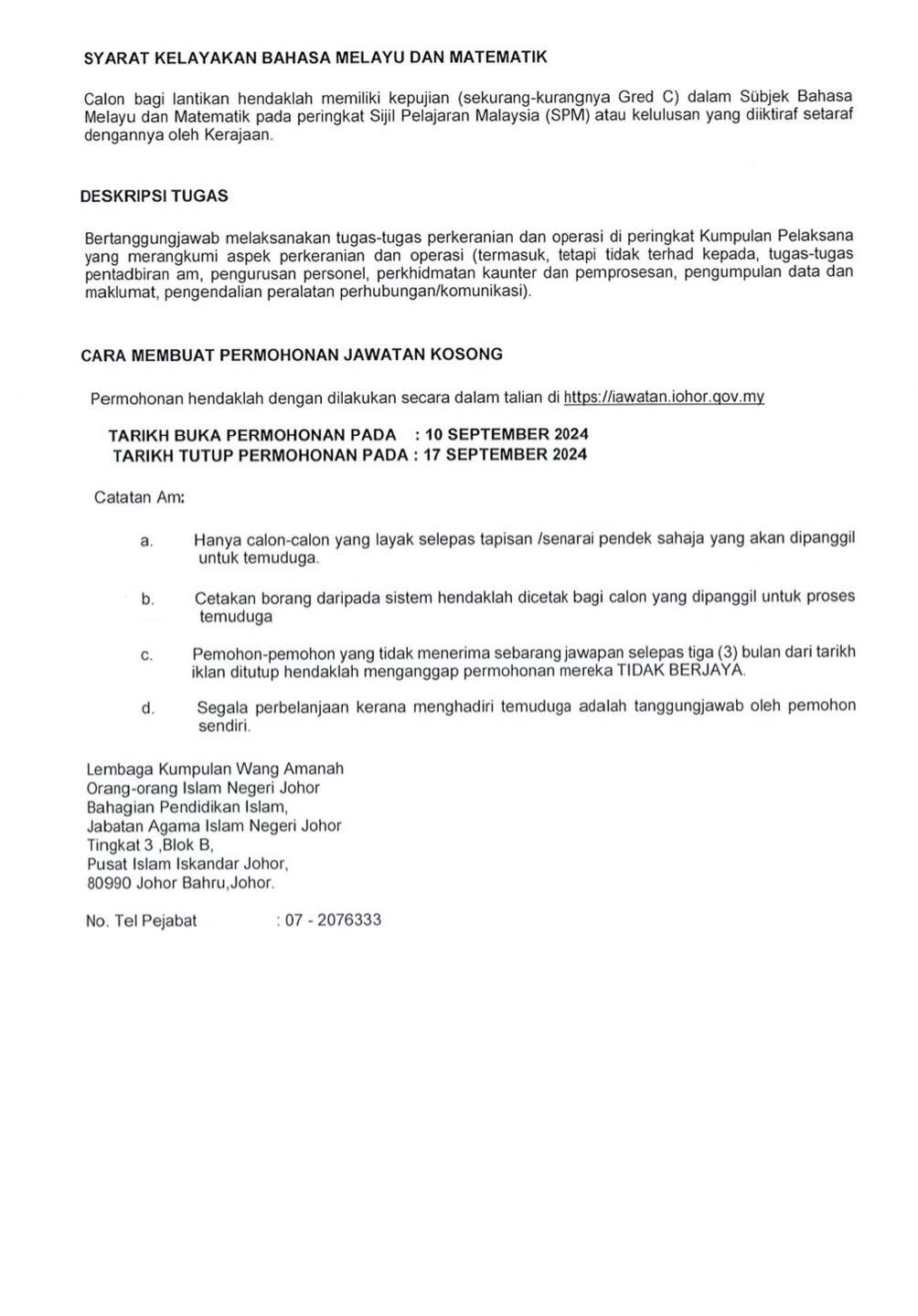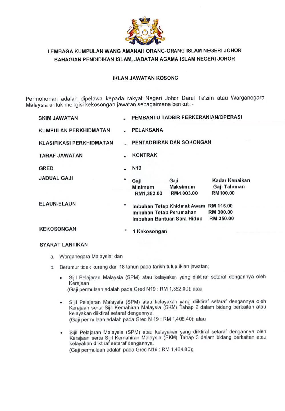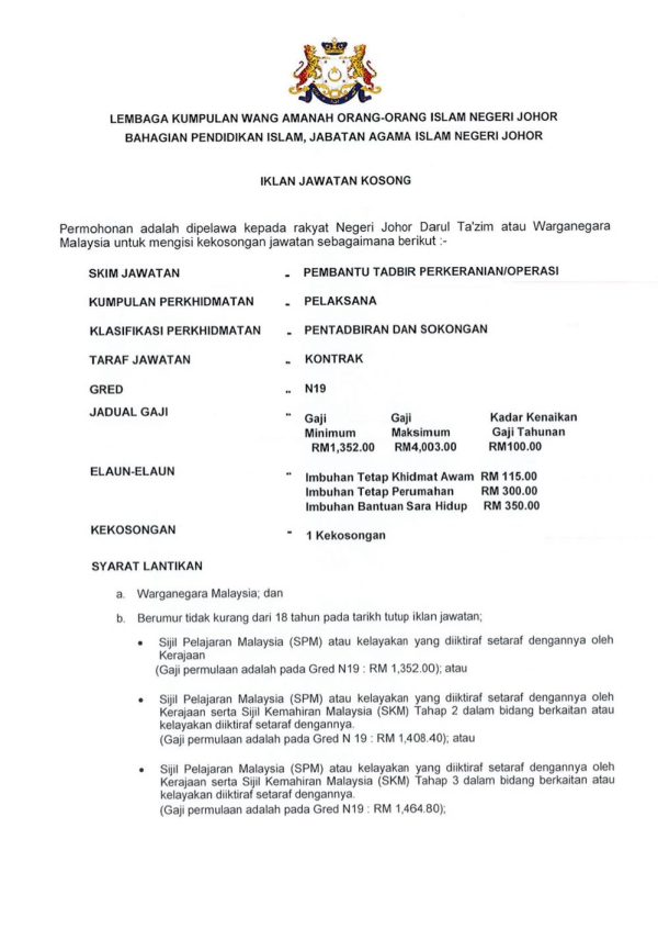 Iklan Kini Jawatan Di Jabatan Agama Islam Negeri Johor Like serta Ikut Facebook Kami, follow Chanel WhatsApp Jawatan Kosong & Telegram Portal SPA9 untuk capaian pantas kekosongan jawatan daripada kami sekarang.