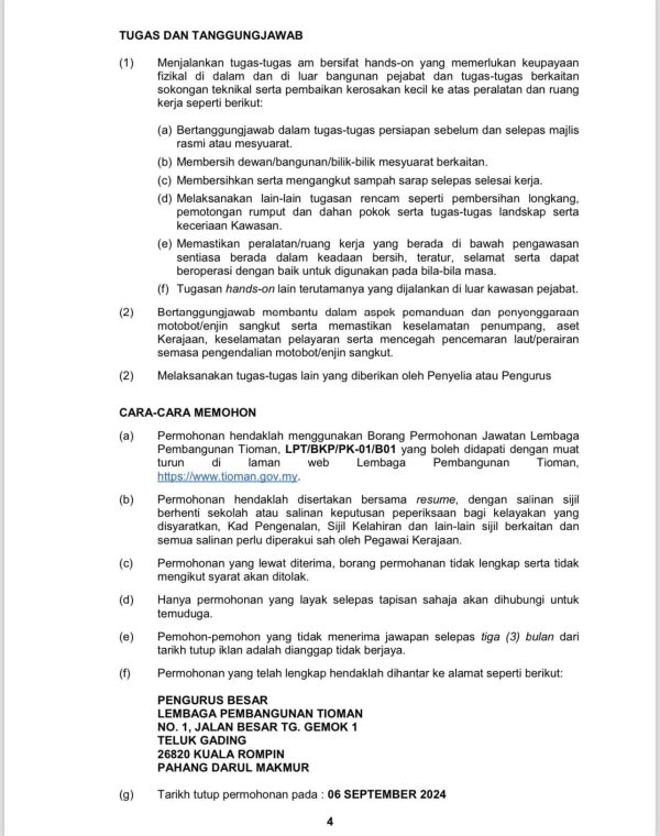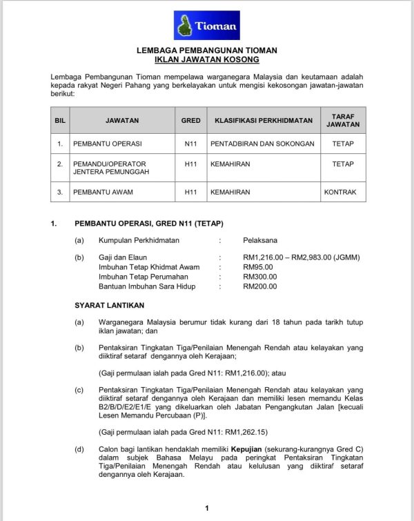Iklan Kini Jawatan Di Lembaga Pembangunan Tioman Like serta Ikut Facebook Kami, follow Chanel WhatsApp Jawatan Kosong & Telegram Portal SPA9 untuk capaian pantas kekosongan jawatan daripada kami sekarang. Klik Jawatan Disini
