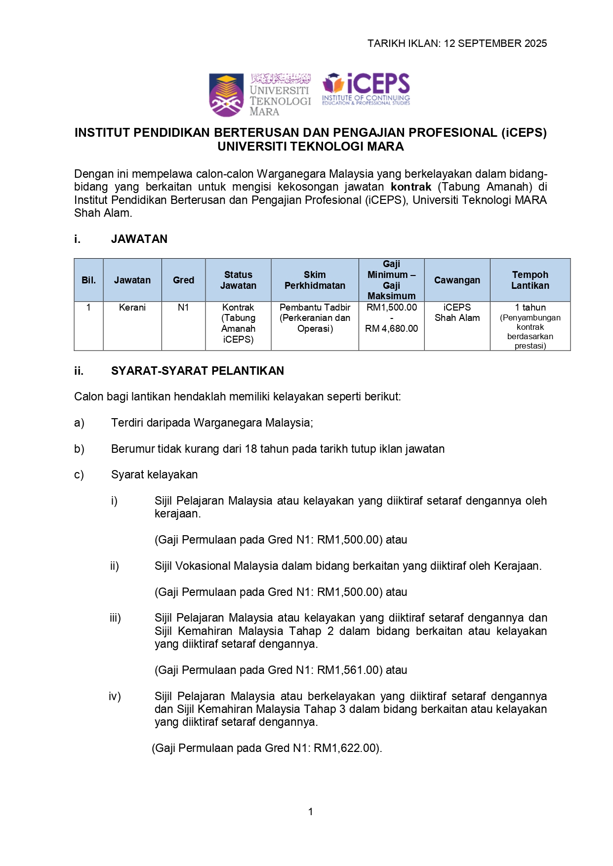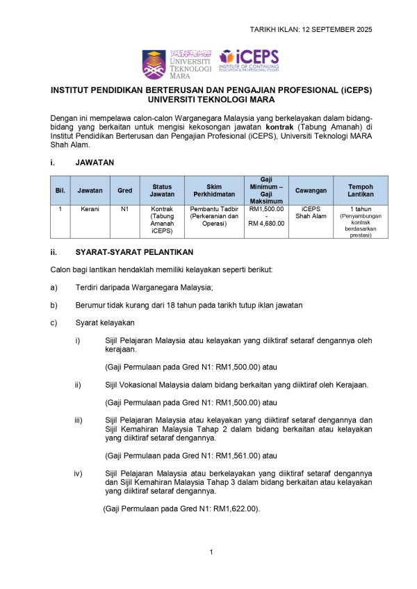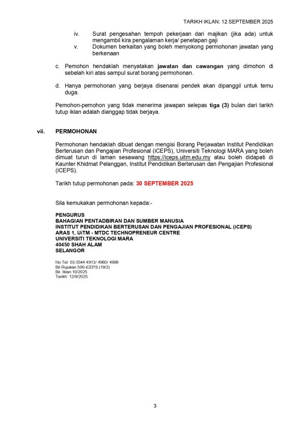 Iklan Kini Jawatan Institute of Continuing Education & Professional Studies Klik Iklan Disini Like serta Ikut Facebook Kami, follow Chanel WhatsApp Jawatan Kosong & Telegram Portal SPA9 untuk capaian pantas kekosongan jawatan daripada kami sekarang.