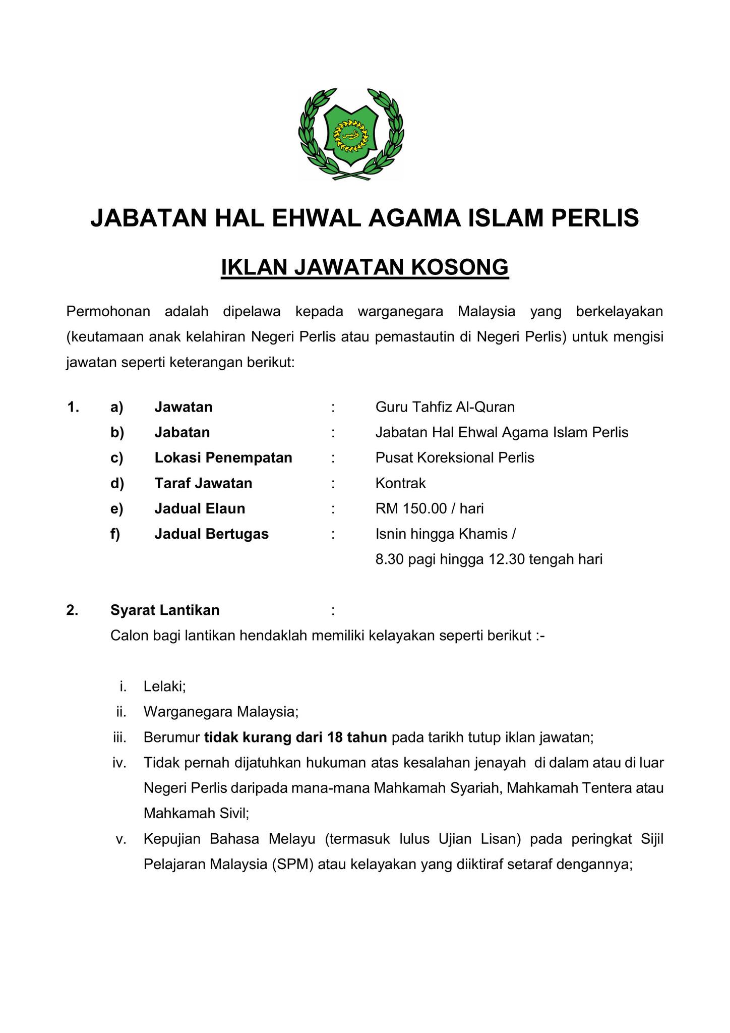 Iklan Kini Jawatan Jabatan Hal Ehwal Agama Islam Perlis (JAIPs) Like serta Ikut Facebook Kami, follow Chanel WhatsApp Jawatan Kosong & Telegram Portal SPA9 untuk capaian pantas kekosongan jawatan daripada kami sekarang. Klik Jawatan Disini