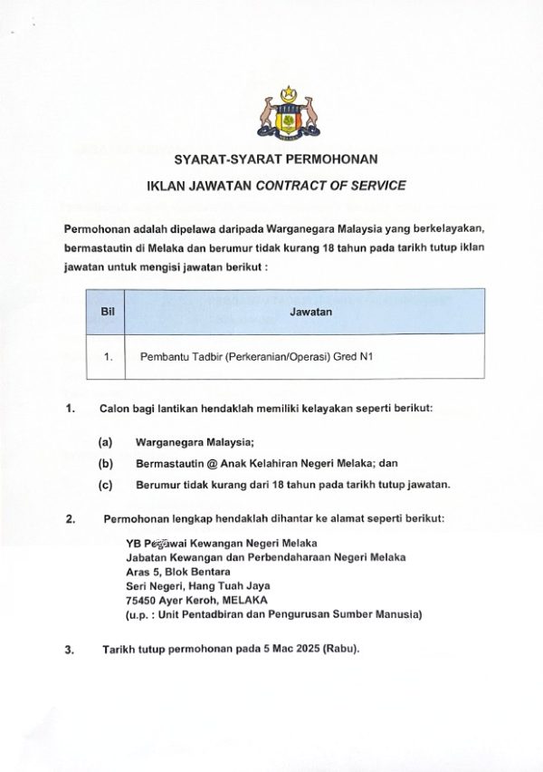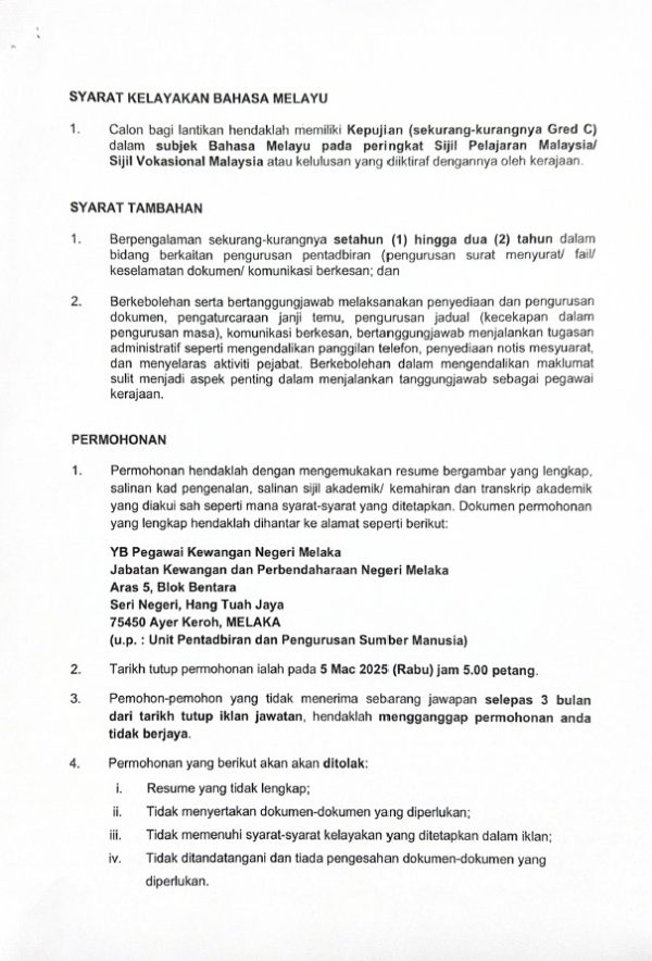 Iklan Kini Jawatan Jabatan Kewangan dan Perbendaharaan Negeri Melaka Klik Jawatan Disini Like serta Ikut Facebook Kami, follow Chanel WhatsApp Jawatan Kosong & Telegram Portal SPA9 untuk capaian pantas kekosongan jawatan daripada kami sekarang.