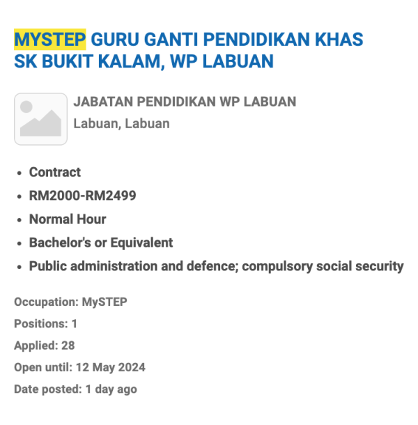 Iklan Kini Jawatan Jabatan Pendidikan WP Labuan