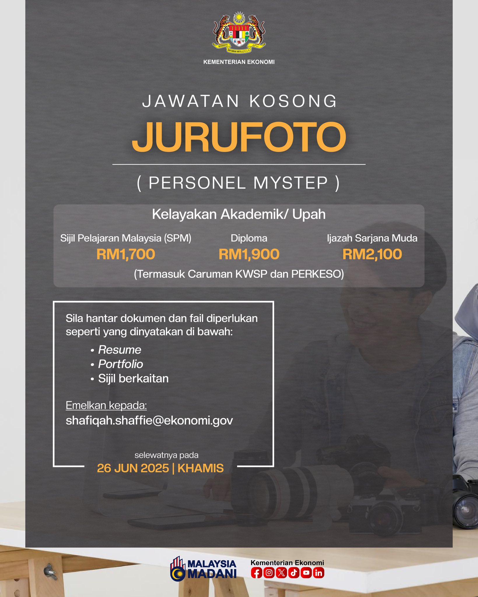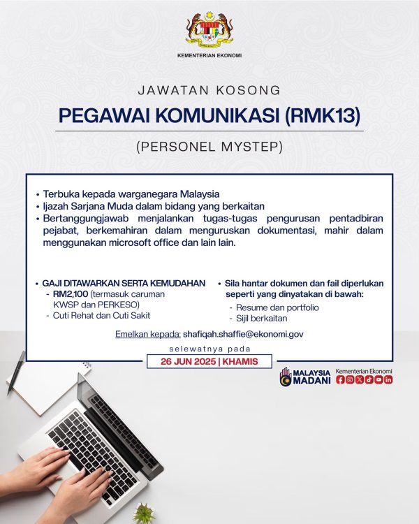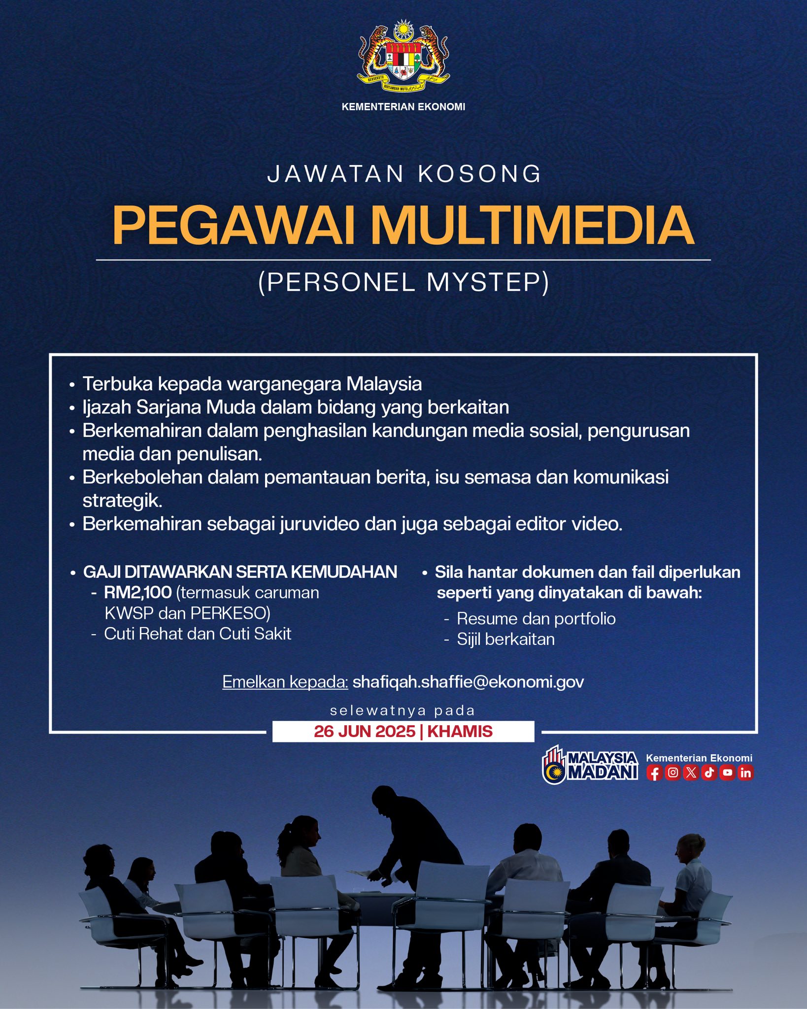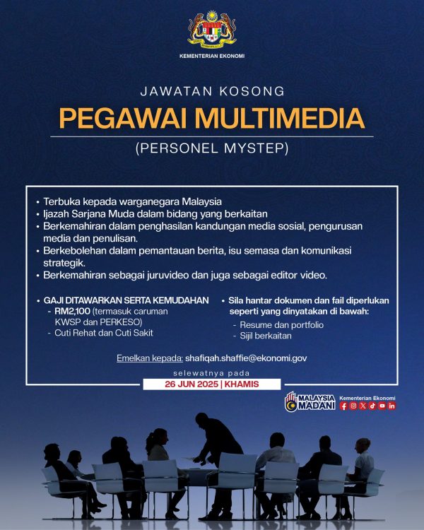 Iklan Kini Jawatan Kementerian Ekonomi Klik Jawatan Disini Like serta Ikut Facebook Kami, follow Chanel WhatsApp Jawatan Kosong & Telegram Portal SPA9 untuk capaian pantas kekosongan jawatan daripada kami sekarang.