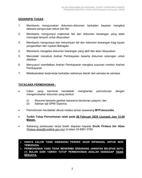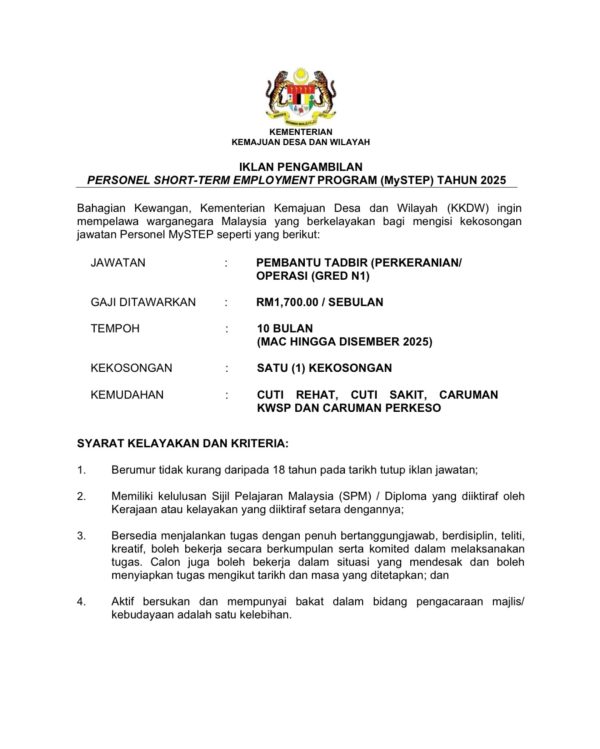 Iklan Kini Jawatan Kementerian Kemajuan Desa dan Wilayah (KKDW) Klik Jawatan Disini Like serta Ikut Facebook Kami, follow Chanel WhatsApp Jawatan Kosong & Telegram Portal SPA9 untuk capaian pantas kekosongan jawatan daripada kami sekarang.