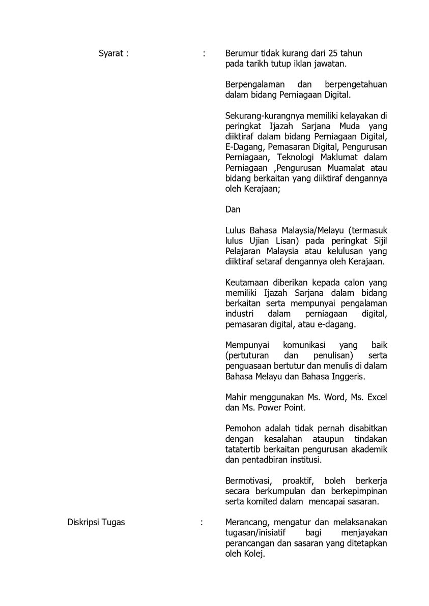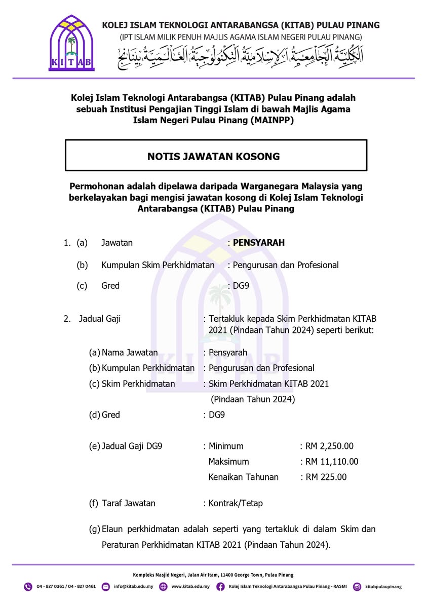 Iklan Kini Jawatan Kolej Islam Teknologi Antarabangsa Pulau Pinang Like serta Ikut Facebook Kami, follow Chanel WhatsApp Jawatan Kosong & Telegram Portal SPA9 untuk capaian pantas kekosongan jawatan daripada kami sekarang. Klik Jawatan Disini