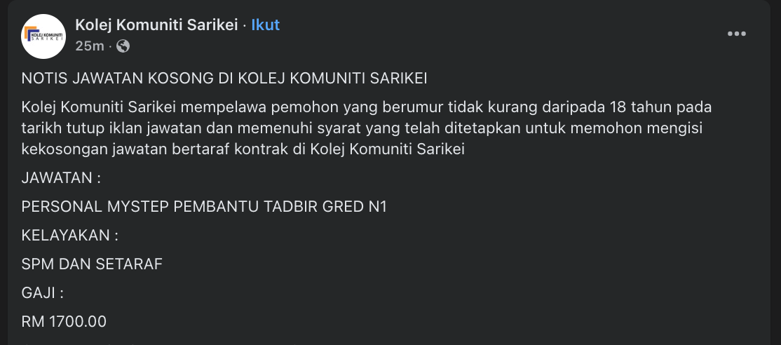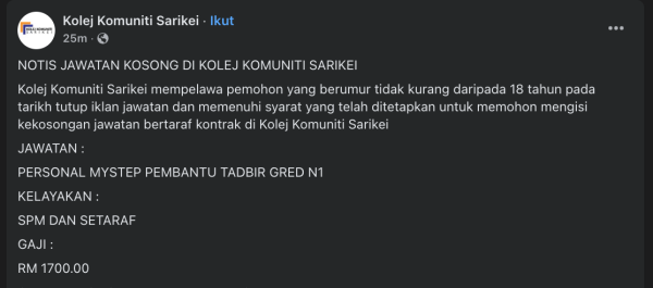 Iklan Kini Jawatan Kolej Komuniti Sarikei Like serta Ikut Facebook Kami, follow Chanel WhatsApp Jawatan Kosong & Telegram Portal SPA9 untuk capaian pantas kekosongan jawatan daripada kami sekarang. Klik Jawatan Disini