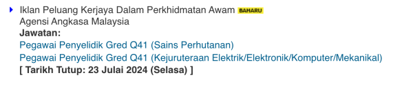 Iklan Kini Jawatan Kosong Agensi Angkasa Malaysia Like serta Ikut Facebook Kami, follow Chanel WhatsApp Jawatan Kosong & Telegram Portal SPA9 untuk capaian pantas kekosongan jawatan daripada kami sekarang. Klik Jawatan Disini