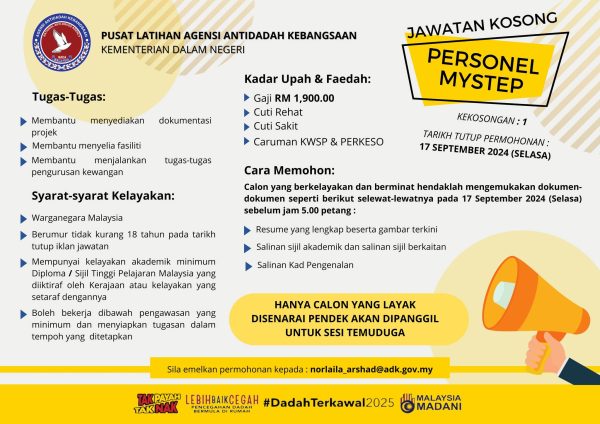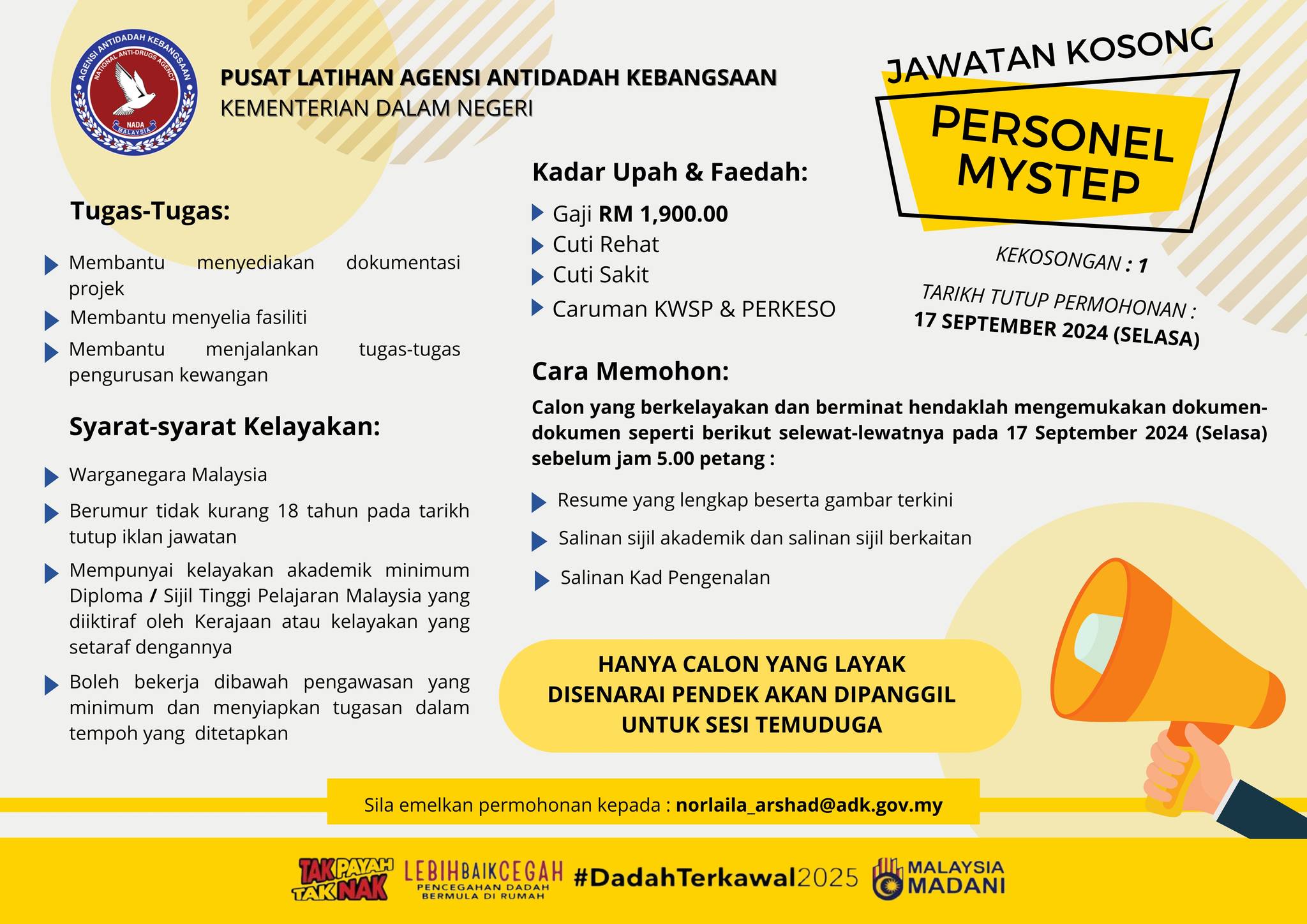 Iklan Kini Jawatan Kosong Agensi Anti Dadah Kebangsaan (AADK) Like serta Ikut Facebook Kami, follow Chanel WhatsApp Jawatan Kosong & Telegram Portal SPA9 untuk capaian pantas kekosongan jawatan daripada kami sekarang.