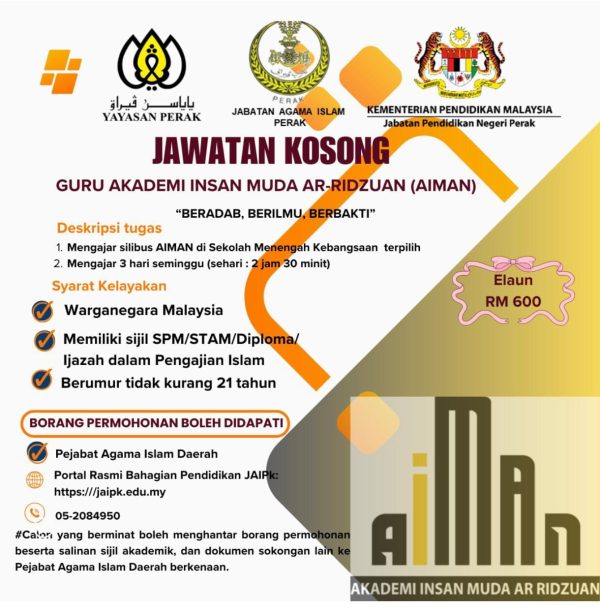 IKlan Kini Jawatan Kosong Akademi Insan Muda Ar-Rizduan (AIMAN) Klik Jawatan Disini Like serta Ikut Facebook Kami, follow Chanel WhatsApp Jawatan Kosong & Telegram Portal SPA9 untuk capaian pantas kekosongan jawatan daripada kami sekarang.