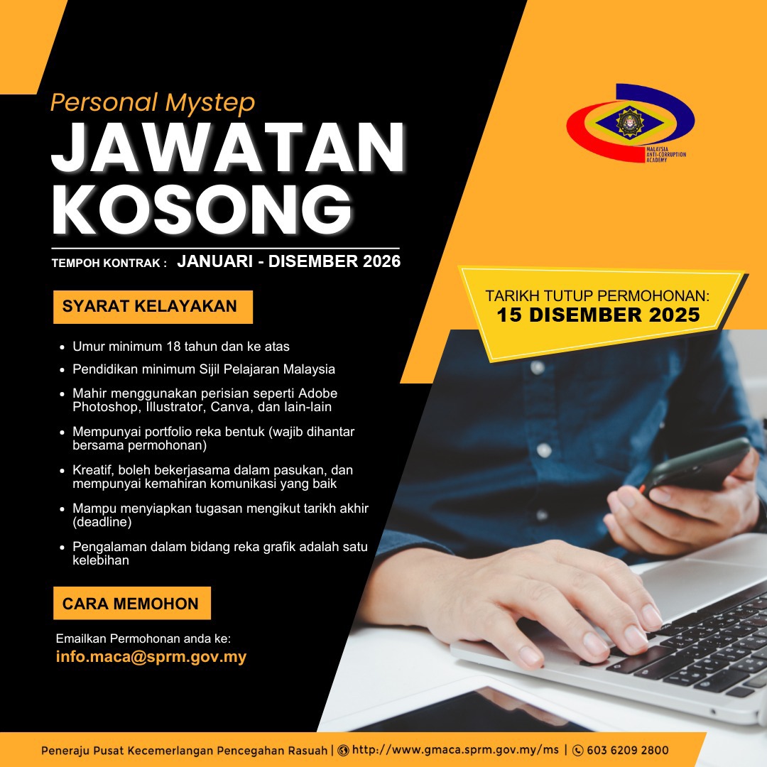 Iklan Kini Jawatan Kosong Akademi Pencegahan Rasuah Malaysia Like serta Ikut Facebook Kami, follow Chanel WhatsApp Jawatan Kosong & Telegram Portal SPA9 untuk capaian pantas kekosongan jawatan daripada kami sekarang. Klik Iklan Jawatan