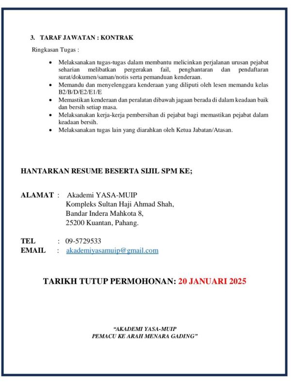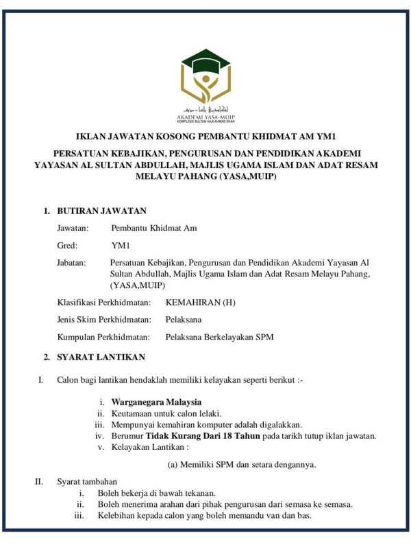 Iklan Kini Jawatan Kosong Akademi YASA-MUIP Like serta Ikut Facebook Kami, follow Chanel WhatsApp Jawatan Kosong & Telegram Portal SPA9 untuk capaian pantas kekosongan jawatan daripada kami sekarang. Klik Link Disini